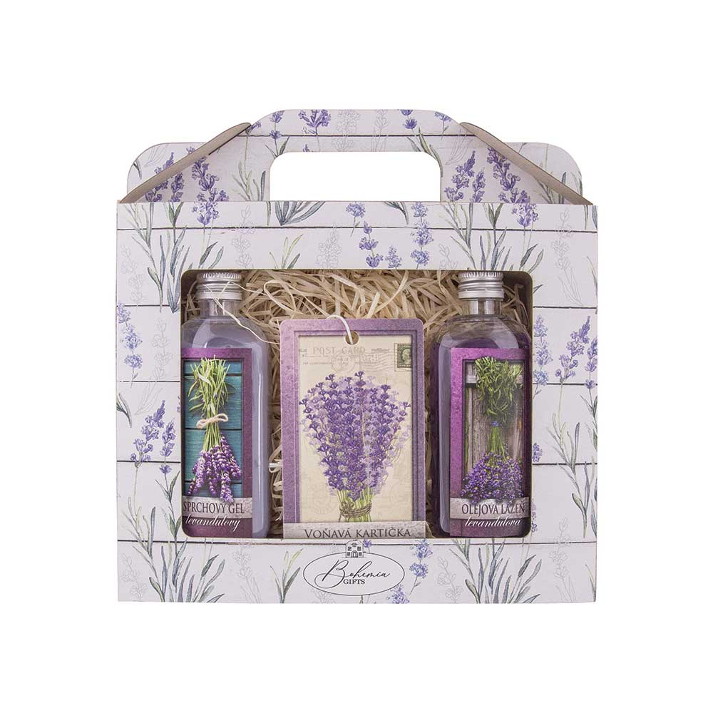 Dárkový kosmetický balíček levandule – sprchový gel 100 ml, olejová lázeň 100 ml a vonná karta